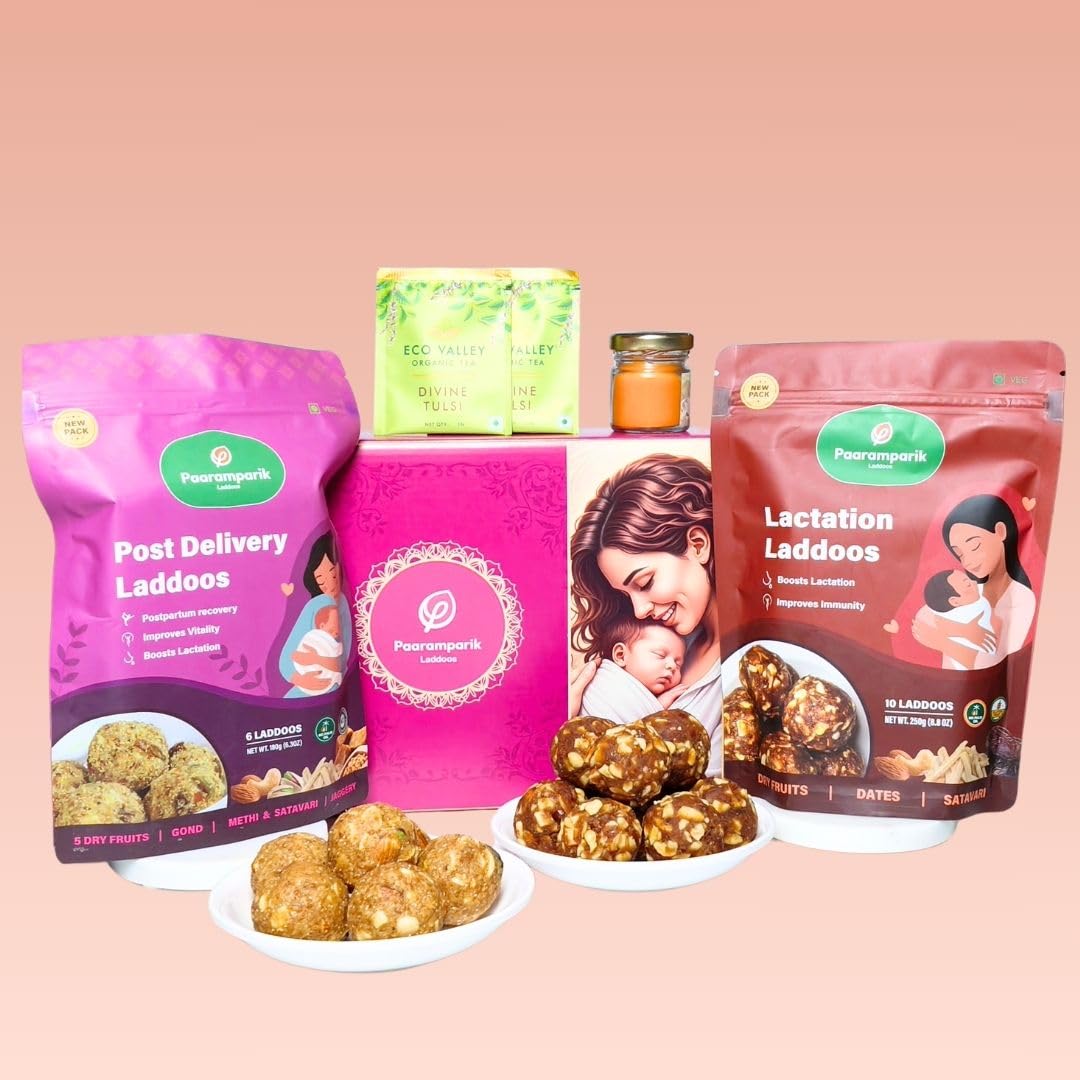 Gond laddus support postpartum recovery by strengthening bones, improving energy levels, and promoting lactation. Help regain your beauty or skin and hair.